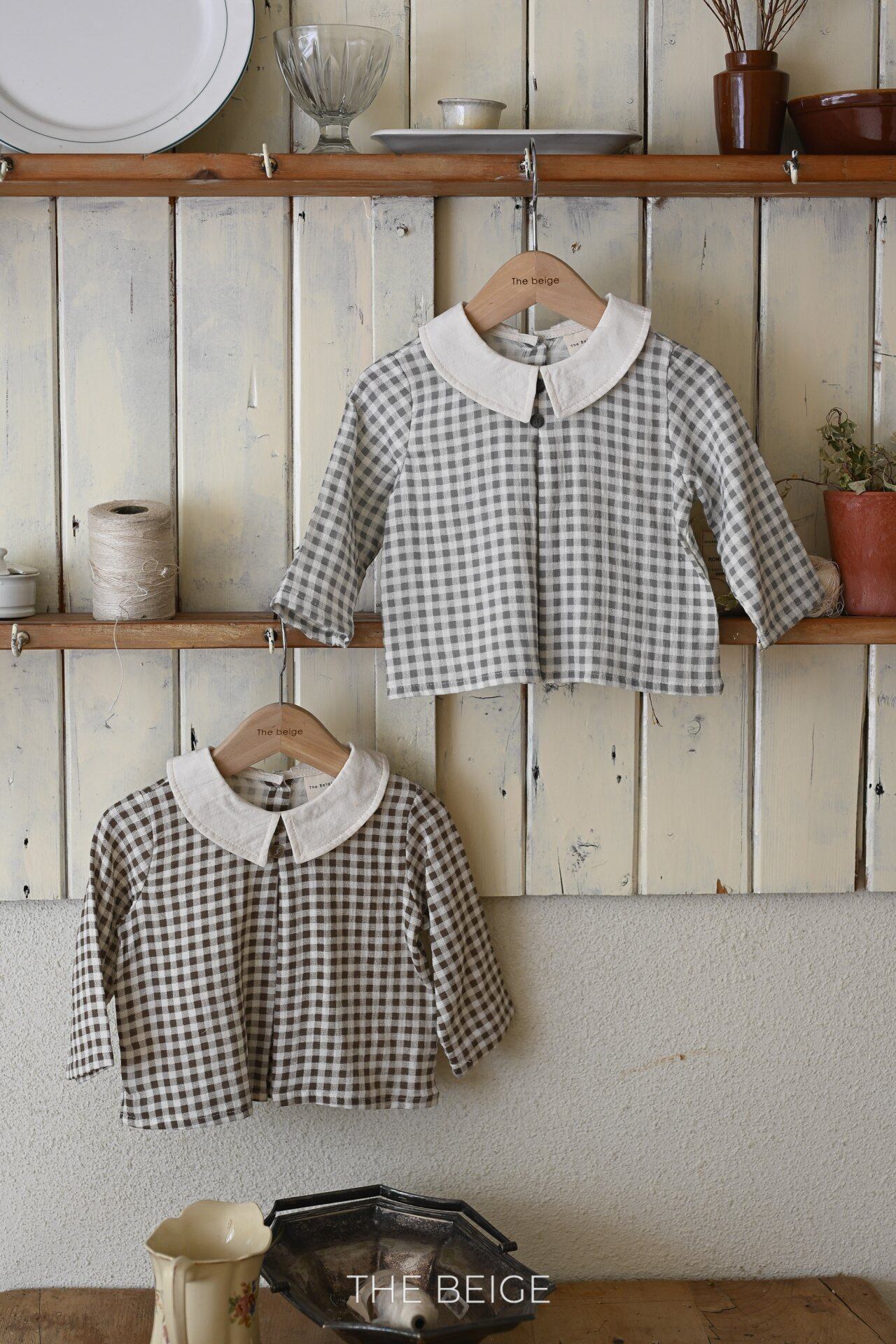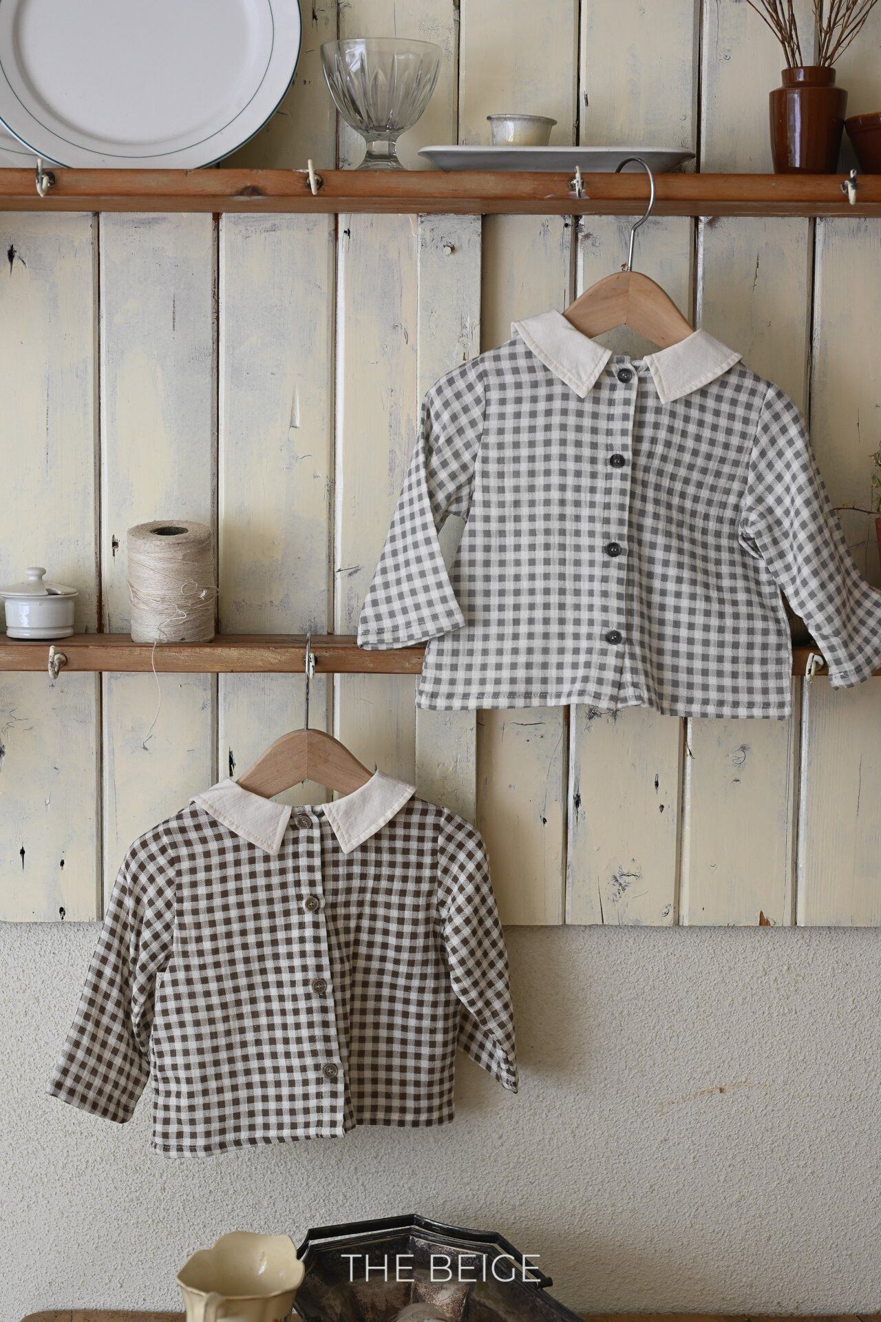 各色ラス1発注済:the beige:gingham check blouse